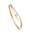 A marvellous fusion of dazzle and gleam, The Interlooped Floral Bracelet effectively revives any attire it is teamed up with. Intersecting loops of gleaming gold and dazzling diamonds encase a radiant little flower in the centre to form the mesmeric design of this bracelet. Exquisite and feminine, this one is a must addition to your jewellery collection.